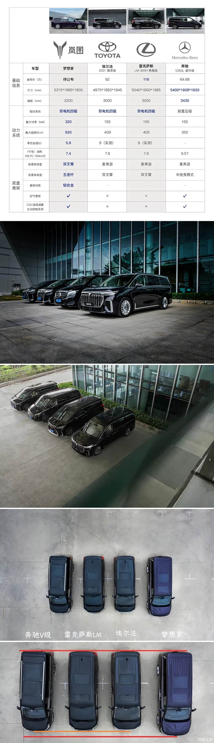 ③岚图梦想家、雷克萨斯LM、埃尔法、奔驰V,放在一起,气场如何?