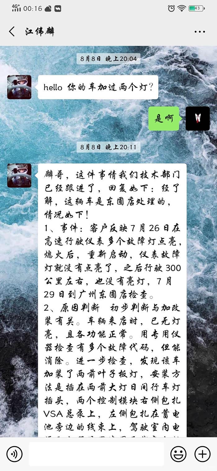 这一段路有50-60公里,从正果服务区到广汽本田东圃4s店的距离,在这一段路里面,我在暴力提速试车,可是一直到4s店故障灯都没有再次亮起,我真的“走投无路”了,我现在不知道怎么办了,真的很无助,我印象中八月初才从4s店检修回来,这才多久才跑了多少公里?怎么又出现故障了,这是广州羊城交通台主持人,江伟麟(在这里真的很感谢这位主持人,也很感谢广州羊城交通台)这是八月初(八月初的检修,我也有发贴可以翻翻我的贴,报发动机排放系统故障跟变速箱故障的那次)主持人帮我联系厂家技术支持到4s店给到我的答复,但是现在月底车又故障了。