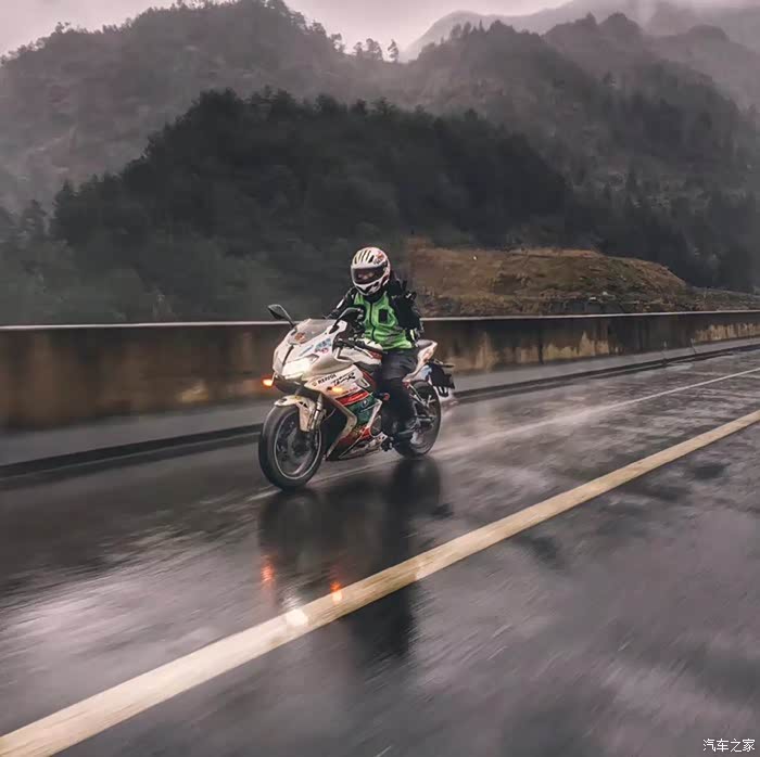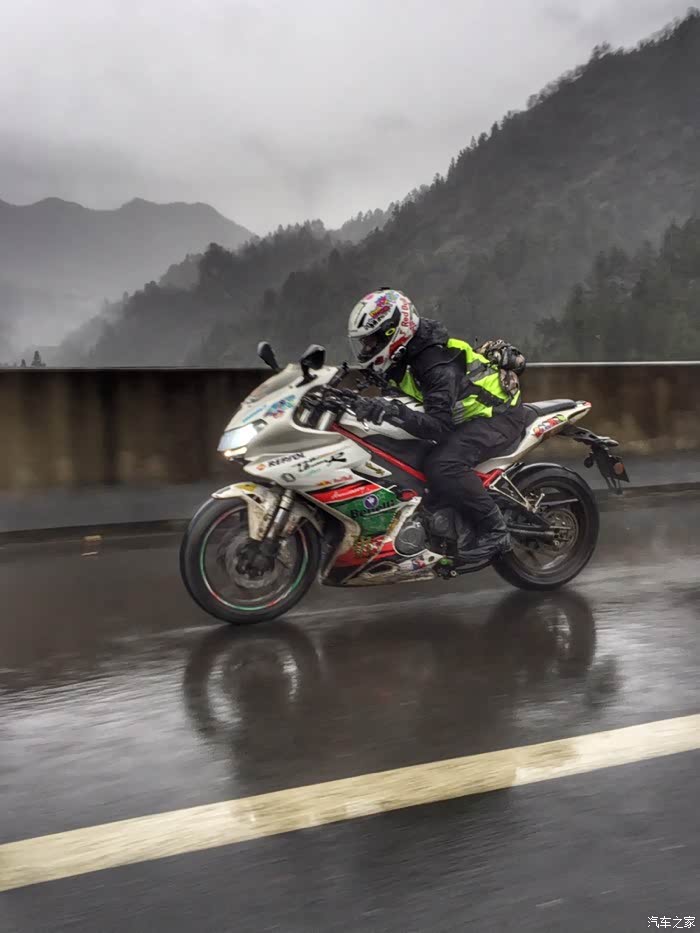 风雨无阻都要骑车。大雨磅礴下有过两次落汤鸡经历。所以首保过后将近1000km才来补更。这里主要说说这1000km的使用心得,飓风的震动在5500转左右,并不是网上测评的6500转才来。过了6500才没有这种感觉。玩乐性个人觉得要拉到7000以上才能给驾驶各种自信,而且操控性的确不错。飓风的坐姿虽然前倾却不是很战斗,这个一更的时候说过,可以在行车ing,很轻松的找到那个舒适骑姿。