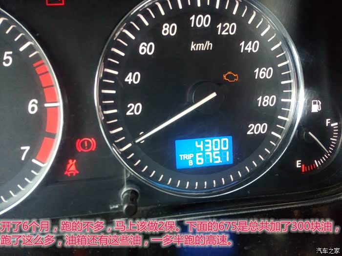可能是高速跑多了,看起来跑了不少,一般情况下100块的油,跑240公里上下,这次300元的油,油箱还有油没跑完。