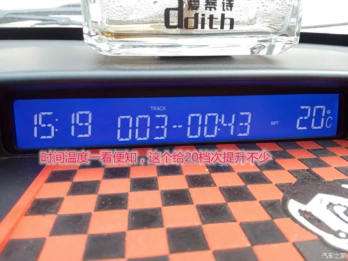 中控很简洁、清晰,大气,上面的温度、时间液晶屏很有档次,很有家庭小轿车的赶脚。