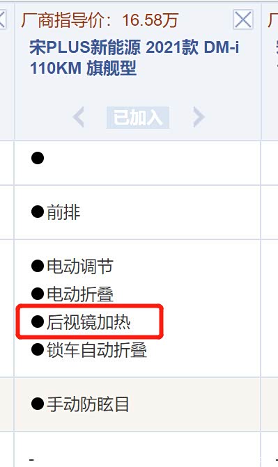 无意中在汽车之家 宋plus dmi 配置表里看到,110旗舰款配置里有,后视镜加热功能,请问是真的假的?我怎么在车子上没找到呢?是不是网站配置单错了?