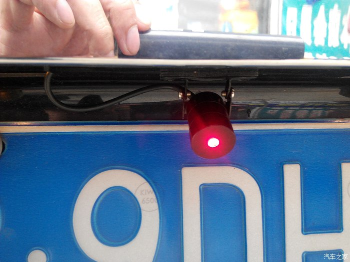 激光灯固定就是用自带的3M胶粘在牌照灯中间,灯的上下角度可以调节,安装好的效果是这样: