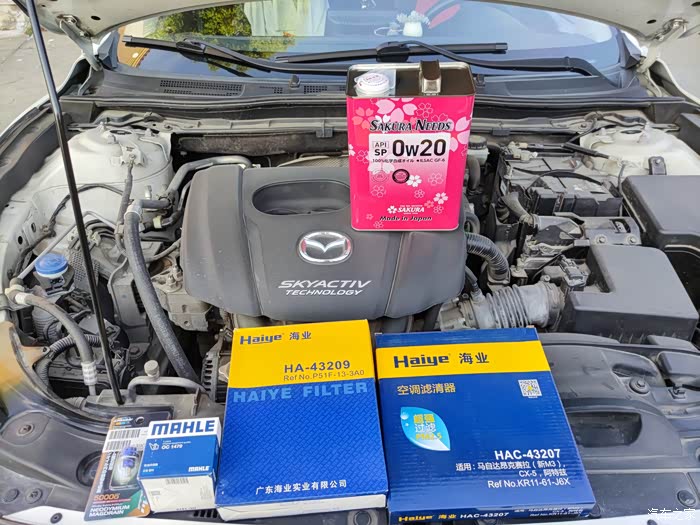 这次用日本樱花的0W-20,之前自己的车用过一次,体感很好。空滤跟空调滤芯还是跟上次一样选用海业的,机滤搞个小马勒,旁边的磁性螺丝忽略,最后没换上。