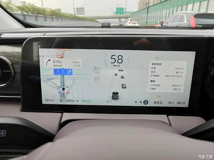 先不说它的nappa材质或者说是普通的皮质,但是从设计上来说,我觉得C11这种完全对称式的设计美学是非常合我口味的,而且中控的屏幕现在往外延伸了一些,变为了跟C10同款的这么个显示屏,好像是2k效果和色彩当然都没得说,都是挺好的,然后标配的8295让这台车的车机运算更快了,这点很棒
