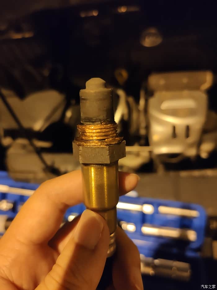 专用的就是好,套上整个氧传感器均匀受力。重复拆卸线头的动作。