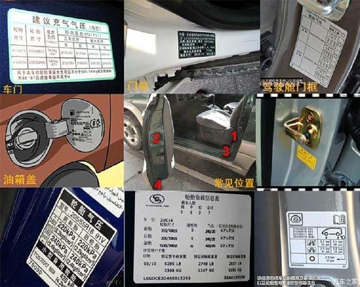 查询手册,告知车门处有胎压数据,但没有找到,反复查阅使用说明,终于看到一行提示:胎压2.6!但与眼前事实不符