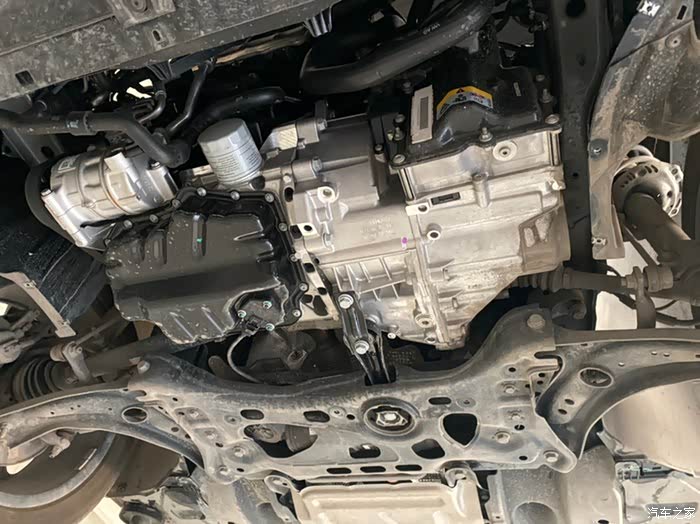 拆下护板的发动机仓,因为有护板,整个发动机下面还是很干净的。