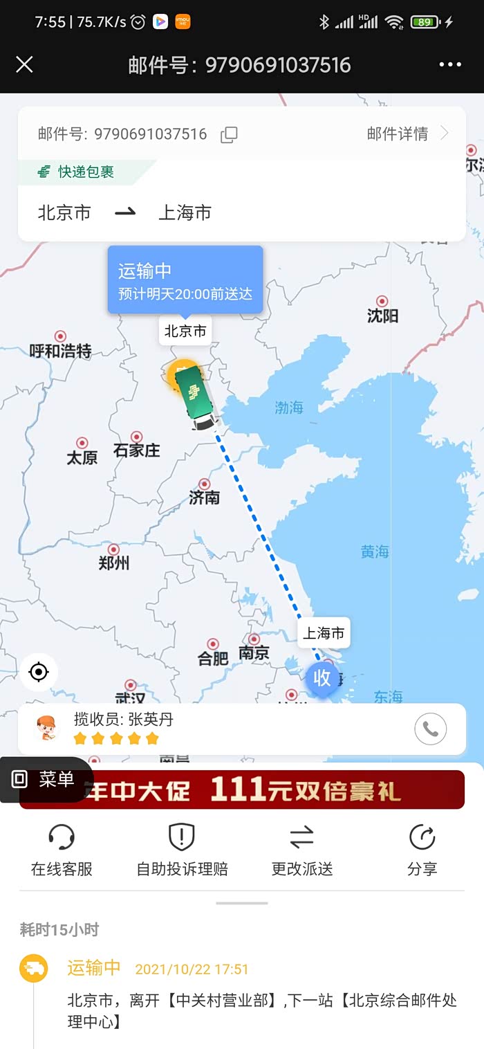 之后就是漫长的快递等待接收中直到25日晚终于收到短信通知快递到了快递柜了。