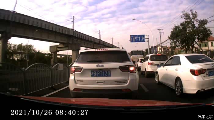 原车索尼记录仪饱和度低HDR明暗控制不佳(前排车牌可见)但吉利SUV车牌与上方飞机模糊