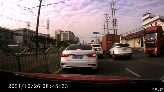 26日一早天空蔚蓝当前模式为1080P60FPS效果 前车车牌清晰可见开始两款记录仪的内容对比