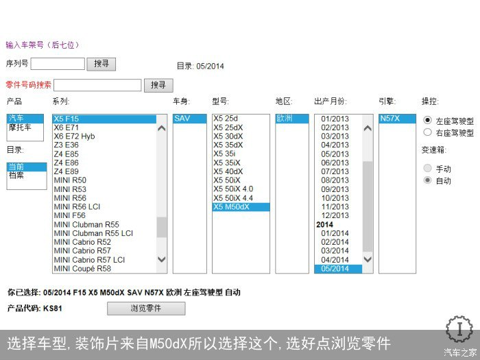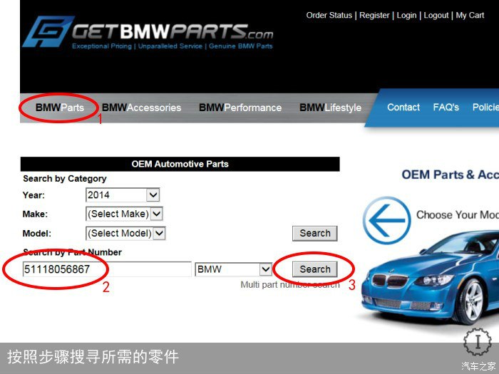 查到需要的零件记好编号, 再到GETBMW PARTS购买