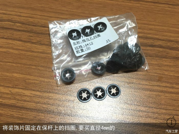 装饰片到手其实已经很长一段时间了, 但是转运商把最重要的锁定环搞丢了, 所以一直没有动手安装上去, 后来花了很多时间在找这个五金, 主要不知道准确的名称是什么, 后来试了各种关键字终于找到这个五金叫”梅花孔挡圈”, 不贵才几分钱一个, 但是少了这个就没办法把装饰片固定在保杆上。