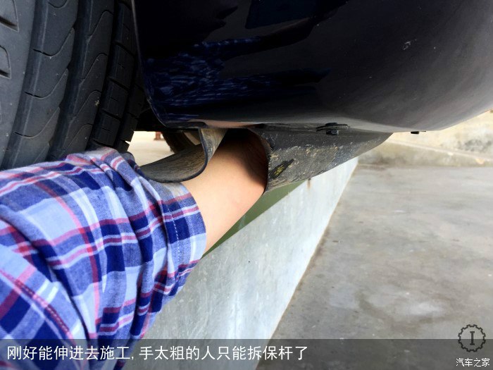 安装之前看了一些国外的教学, 多半说要把前轮拆下, 并拆下保杆内衬,我自己研究了一下, 保杆跟档泥板之间有个空间刚好可以把手伸进去, 这样一来就什么都不用拆了, 找个有落差的平台就可以施工, 首先要把装饰片突出的卡口削掉, 因为一般M套件保杆没有这个卡口,只有M50d的保杆有, 所以必须削掉才能安装, 再来把锁定环卡在装饰片上的塑料圆柱就完成了, 接下来不罗唆, 看图说故事!