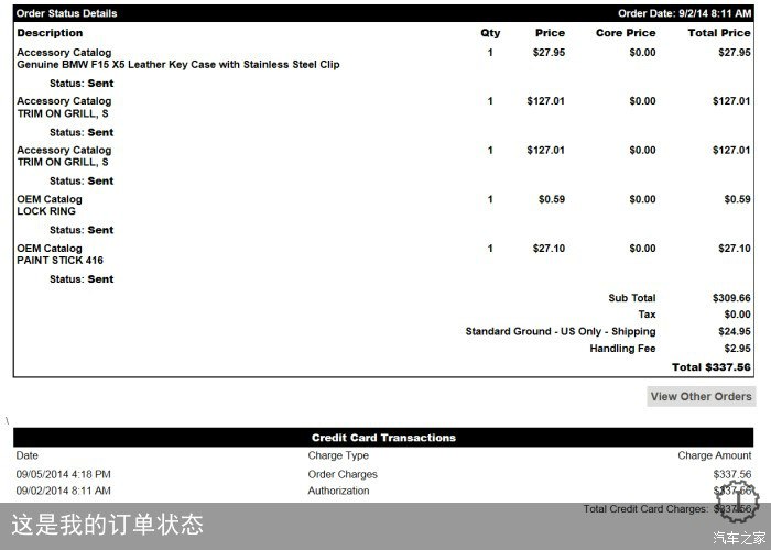 再来就是付款, 寄货到转运商给的地址, 最后寄回国内。付款必须使用支援外币的信用卡, 没有的话也能找到代付的服务。因为国外的网站大部分不直接寄到中国, 所以必须透过转运商来处理中间运输的问题, 但是中国又规定汽车配件不能邮寄, 所以购买之前最好问清楚转运商接不接汽车配件运输, 我就是没事先问清楚多花了几十美元的运费。