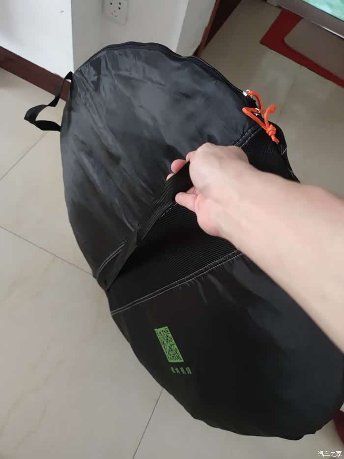 收纳好了的帐篷,既可以手提也可以肩背。