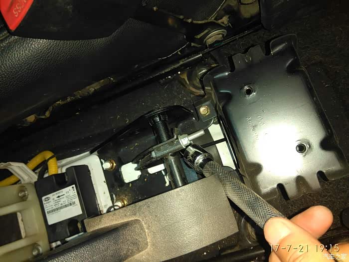 套筒指的地方就是手刹调节螺丝用十的套筒顺时钟扭几圈。搞定!