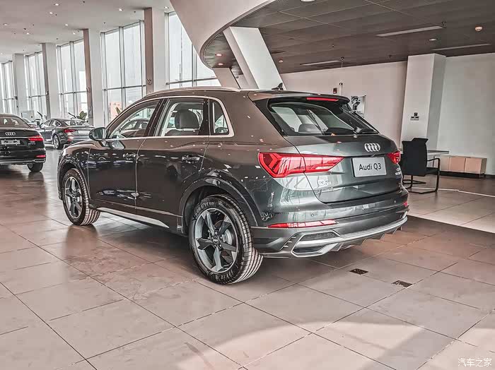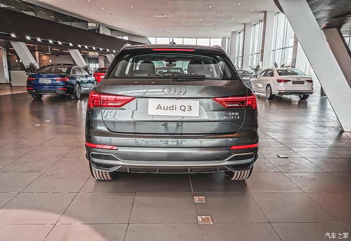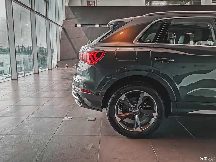 左右后45度角拍起。搭载S-line套件的Q3在尾部配有霸气十足的装饰件,类似于向外扩张的器型,使得整车看上去霸气十足。