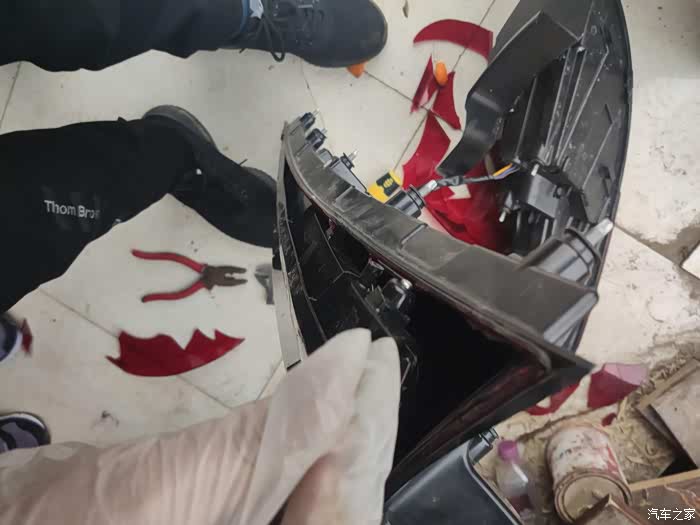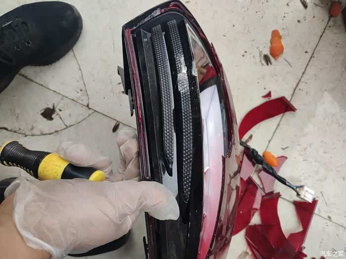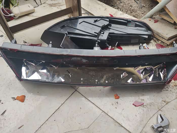 这一步很关键了,把两个灯重重摔在地上并拔下它的皮。无灯带的反光碗已经展现出来了。