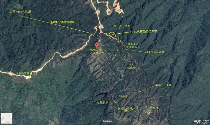 世外桃源--属广东信宜龙湾,离湛江大约230公里,水坭公路直通到营地。海拨900米,四周山峦层层,原始森林密布,处处野生果木鲜花,溪水清沏甘甜 ,大小瀑布和水潭成串,山青水秀,不远处山头有国家核电风车排阵,十分壮观,深山有清朝时代瑶民为避汉人压迫逃入这里,留下古屋遗址。