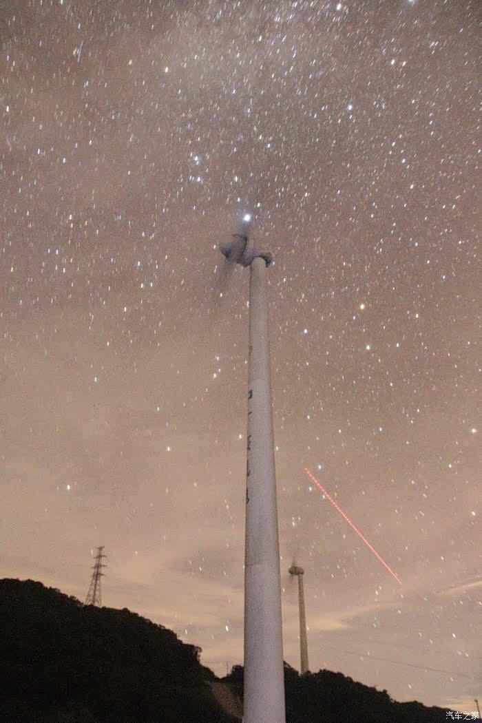 世外桃源深隐于深山丛林之中,海拔800米,刚下过雨湿气太重,吃完饭,8点左右,见到天空零零散散有几颗星星,决定去风车顶找露营点。