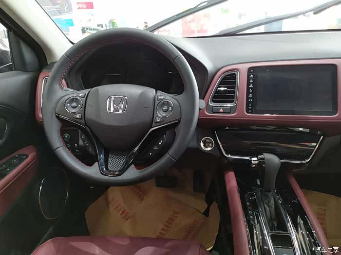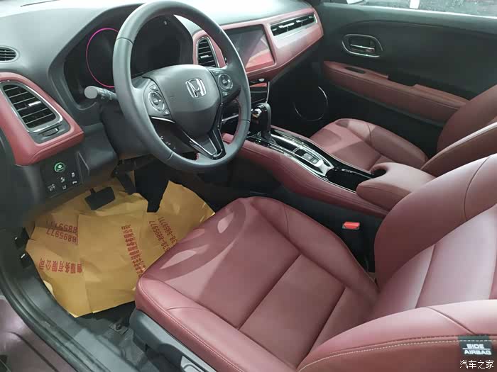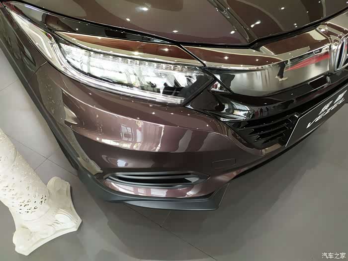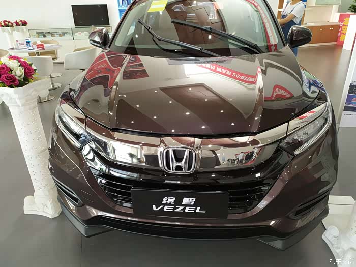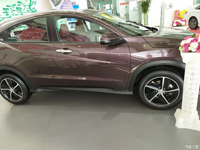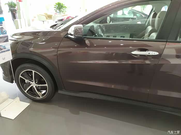 这次看到的车型是1.5T豪华版,紫色车身,外形对比XRV更加激进运动,全身犀利的肌肉线条体现了运动风格,再加上豪华版的运动外观套件,使得这款小型SUV更像是一款性能车。还有1.5T 177马力的本田发动机,按照本田买发动机送车的惯例,新缤智的1.5T的加速动力性能很值得期待啊。而且只需加92#汽油,也体现了缤智的经济性,还有新车搭载的CVT无级变速箱。
