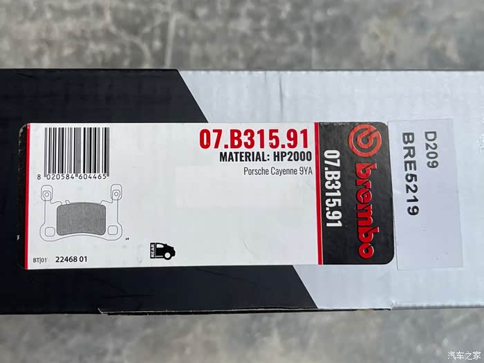 不知不觉卡宴已经开快6万公里了,系统提示需要更换刹车片,找修理厂师傅看了一下,还可以跑一万公里,就没当回事,后来陆陆续续跑了5000公里,最近只要一深踩刹车就提示更换刹车片,所以觉得差不多该更换了,网上某宝、某东找了个遍,只找到了某东泰明顿有前片,其他线上品牌(布雷博、博世等等)客服回复目前新款没有匹配的刹车片,然后我又去4s店问了一下,材料+工时7000+,贵且不说,关键更换为原厂刹车片,异响依然解决不了,所以就在论坛想找找相关更换刹车片的帖子,但这方面的帖子太少,功夫不负有心人,看到广东一哥们(刘一手)的帖子,发现布雷博HP2000,可以完美解决刹车异响,大的改装店可以找到货源,线上肯定是没希望了,那就实体找找呗,终于找到了,价格不到4S一半,而且前、后片根据车架号都能匹配得上,我唯一要求东西正品,等了几天,今天到货了,等我换上开一段时间,再来反馈这款布雷博HP2000到底好不好,毕竟论坛里关于新款刹车片的帖子太少了。