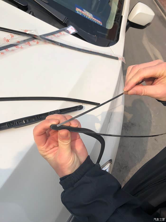 安装新胶条 卡好雨刷器的卡子