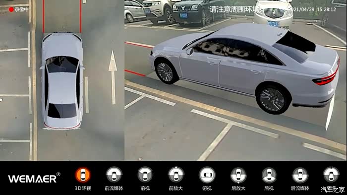 此外,当我们驾离车位,前车或者其他障碍物太近,位置判断不确定时,也可以通过左、右视图,查看掌握车身与障碍物距离,避免剐蹭,安全驶离。