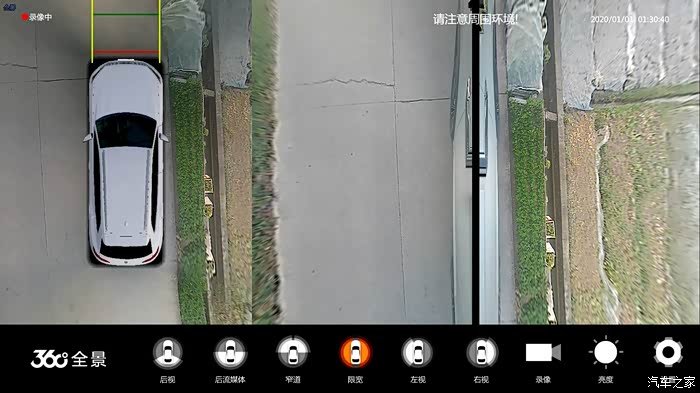 当遇到路牙、路边水渠、路边陡坡等复杂路况时,稍有不慎,容易刮碰轮胎、刮伤车身,甚至发生车辆陷落等险情。360°全景的限宽视图模式(四轮限宽),左右两侧俯视角度同显,能清晰看到车辆左右两边位置和距离状况,车主通过它辅助,及时调整车辆,避免刮碰和陷落。