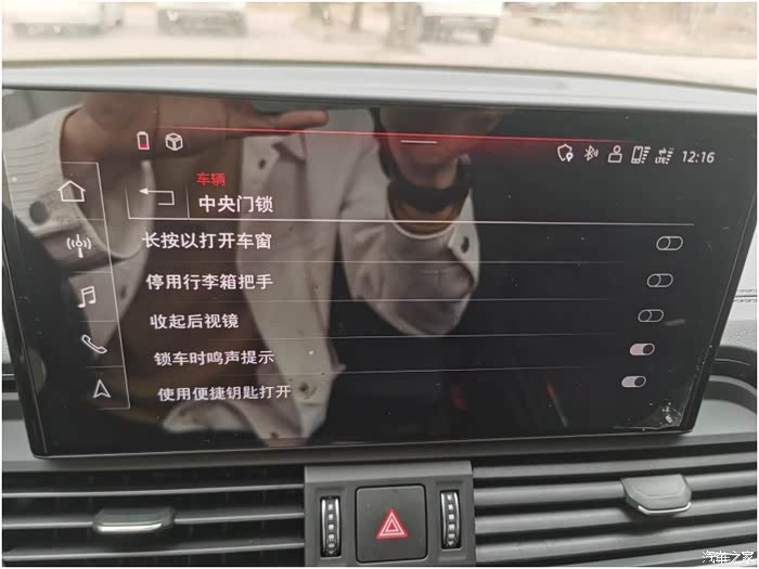 在mmi车机→车辆设置→中央门锁菜单里你就会发现多出一个“锁车时鸣声提示”菜单选项。锁车声音就是轻微响一下,如果车门没关严,锁车声音就不会响,个人觉得这个功能非常实用。