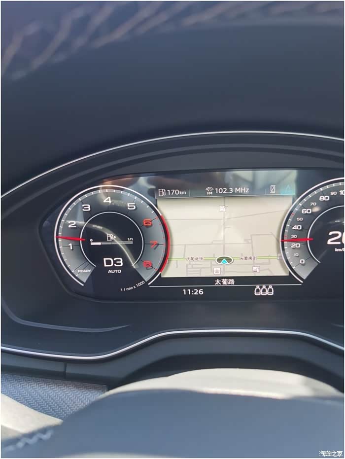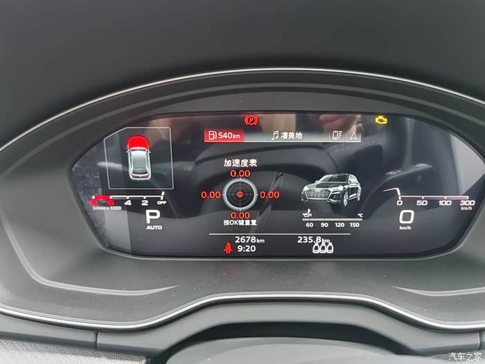 车子通电后,指针就会扫一圈,运动感十足,但是个人觉得这个液晶仪表的运动指针效果没有机械表的好,估计应该和液晶屏的刷新率有关。