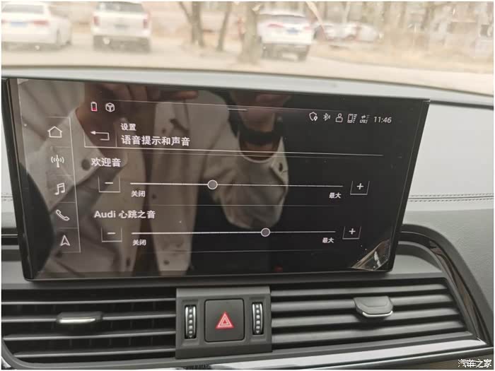 长按档杆旁边的音量键重启mmi车机,在车机的MMI设置→语音提示和声音菜单里就会出现“欢迎音和Audi心跳之音”的菜单,当车通电或者断电后,你就可以享受这欢迎和欢送声音的仪式感了。