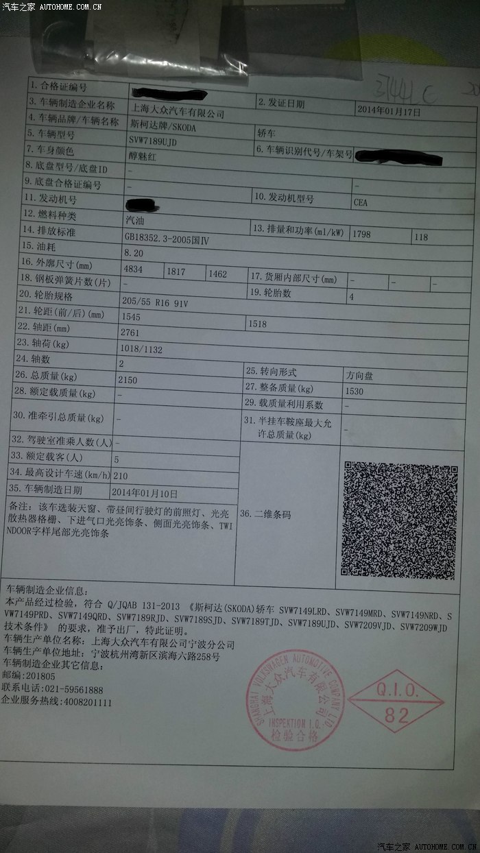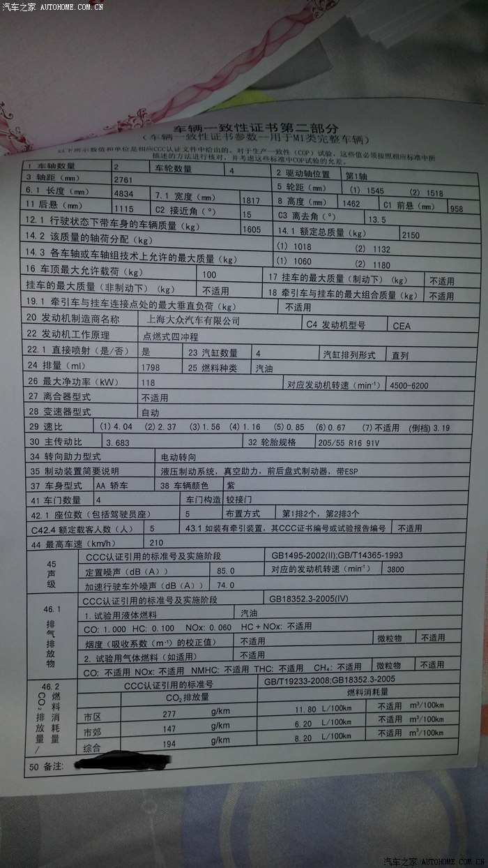 8月18日1.8T雅仕醇魅红提车作业,望能通过认证和申精
