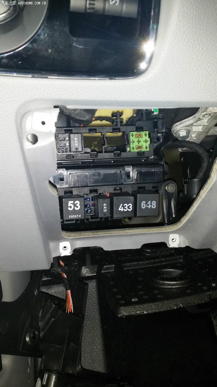 下图中绿色的插孔就是更换的大灯清洗电机继电器插孔:型号和图中那个53的一模一样。
