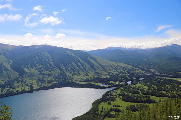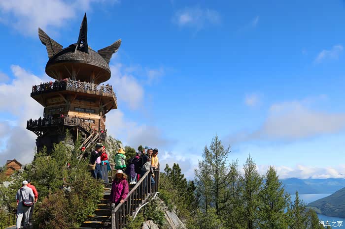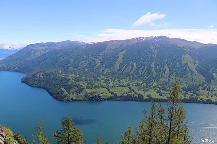 湖西岸骆驼峰顶的观鱼台,是俯瞰喀纳斯湖全景的最佳角度,可将四分之三湖面尽收眼底,还能观览湖周层峦叠嶂。