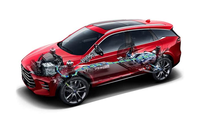 这主要涉及到DM-i三大核心部件,以秦PLUS和宋PLUS DM-i为例,一是骁云-插混专用1.5L发动机,拥有 43.04%的最高热效率(唐DM-i使用的是1.5T发动机,热效率40%)。二是EHS电混系统,该系统中装有两台电机,一台是负责发电的电机,另一台则是驱动车轮的电机。三是DM-i超级混动专用刀片电池,除了提供电力给驱动电机,还能储存发动机释放的能量。