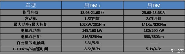 虽然都是插电混动,但DM-i更偏向燃油经济性,而DM-p会更注重动力性能。 以比亚迪唐为例,唐DM-i动力要更弱一些,但它在亏电状态下可实现5.3L/5.5L的百公里油耗,这放在DM车型上是很难做到的。