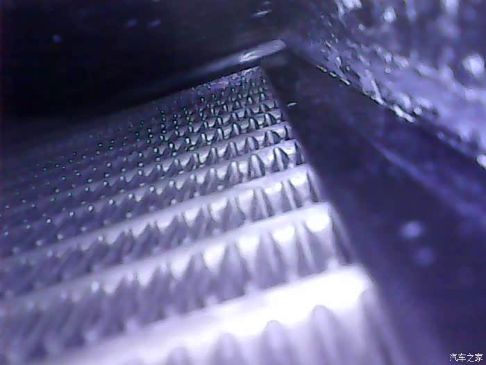 拆掉空调内滤芯,从内滤芯空腔下部往驾驶位侧插入内窥镜,可看到蒸发箱