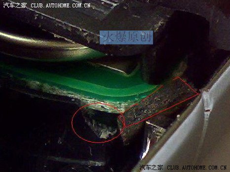 如下图所示,将红圈部分的圆弧形塑料挡板端部切掉一块,这样芯片又可以往上移动了。由于多了2mm空间,芯片会在钥匙壳中松动,于是我在下图红方框所示的位置以及芯片下部两个角的位置(未拍照片,类同于红方框处)分别加了1块1mm厚的橡胶垫片,这样就把芯片卡紧了。