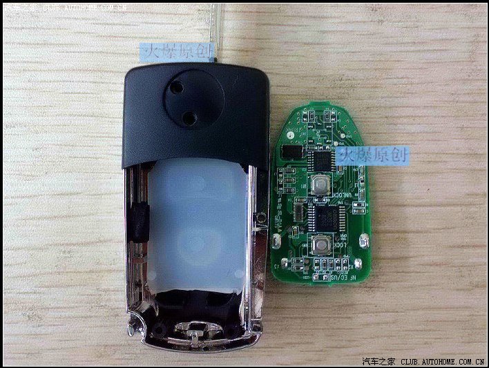 3、怎么办呢?灵机一动,倒过来装试试,哈成功了,不过钥匙壳的开锁、闭锁按键需要对调,因为倒过来安了嘛。
