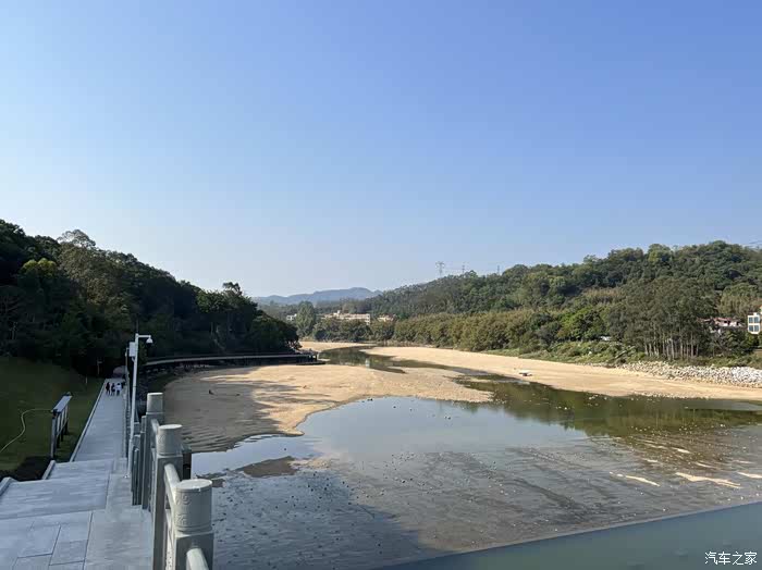 第一站我们来到了增江的拦河坝,修葺得很新很漂亮,这里的基础设施还是很完善的,江的左边有江边木栈道,看起来也是刚修好不久的,下面就是一大片的沙滩由于现在是枯水期,大量的沙滩露出,我们也可以到江对面的水库河鲜农庄那边也可以下去沙滩,已经看到有天幕在下面摆着了。