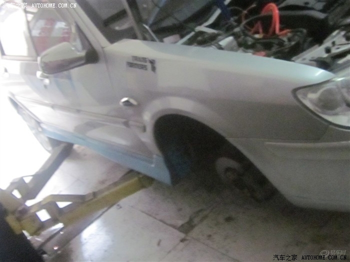 安装因为不用搭下变速箱 所以只需要拆掉原车轮胎。用升降器升起车辆。