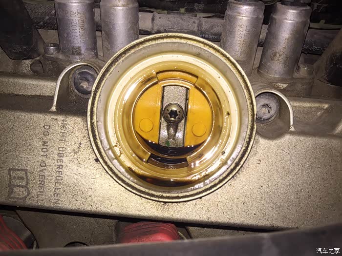 第六个年头,7500-9000间隔,质保期四次4S店原厂机油,之后4锅金美孚,目前国行嘉实多极护0-40至今,常用添加剂。看下机油口,马上准备用德灰0-40。