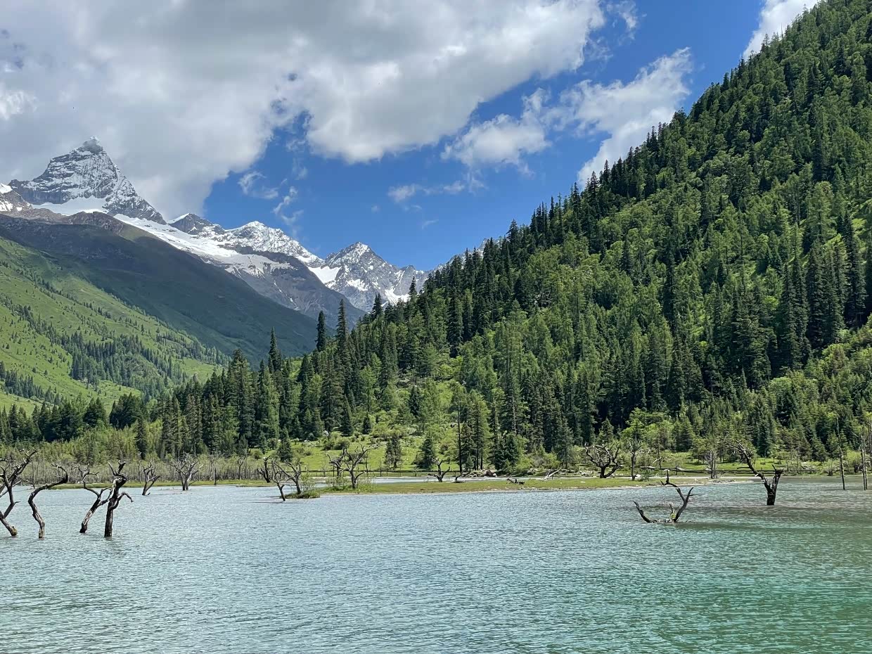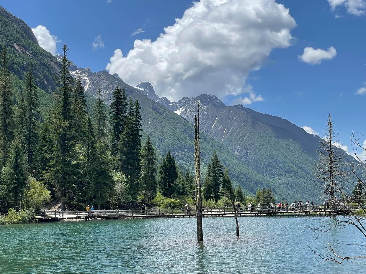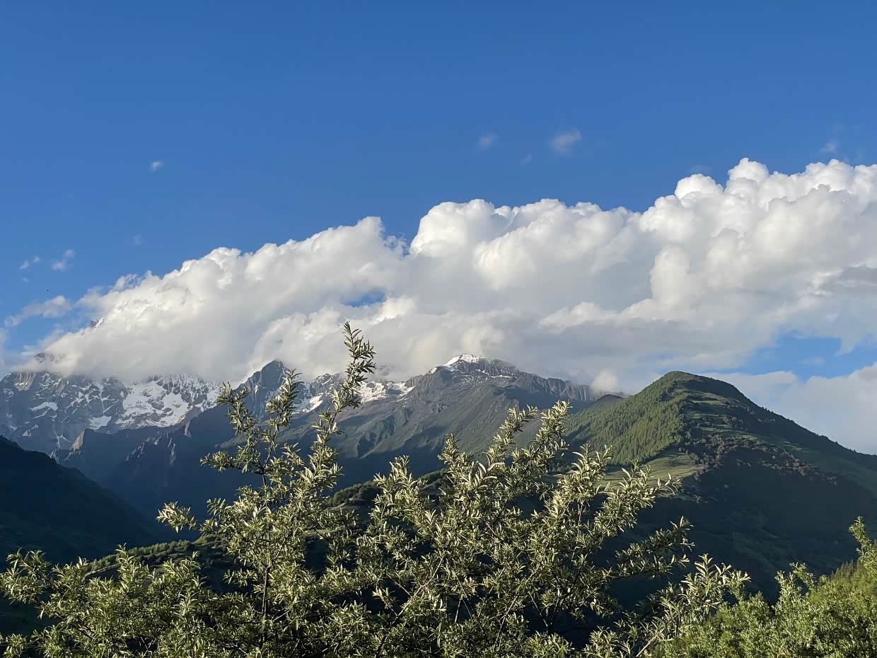 猫鼻梁观景台,四姑娘山山顶被云层遮住,稍显可惜。