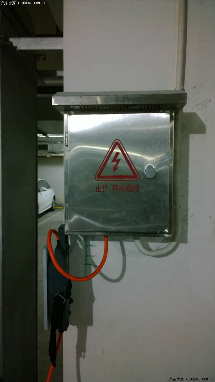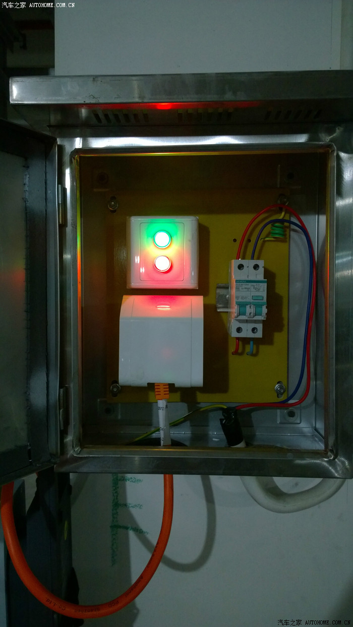 照片可以清楚看到安装的方式。充电箱是我自己准备的,电网只是负责安装。箱子里面的走线,电网略微有点偷懒,不够美观,不过能用就行了。现在终于可以公司、家里都充电了,基本和汽油说再见了。