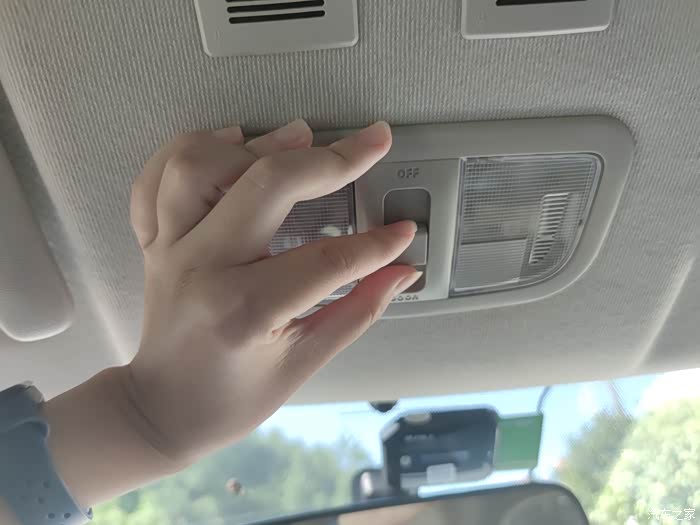 发现白猫车顶的阅读灯中间有一个开关,用手拨了一下,发现没有任何响应啊,这个开关是管哪个地方的呢?是阅读灯的开关还是麦克风的开关呀?因为阅读灯本身就是单独的开关,直接按灯本身就可以控制开关了,那中间这一个多出来的开关又有什么作用呢?