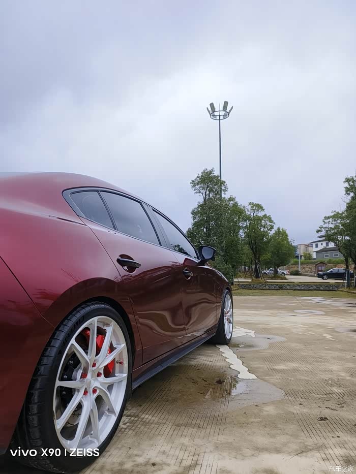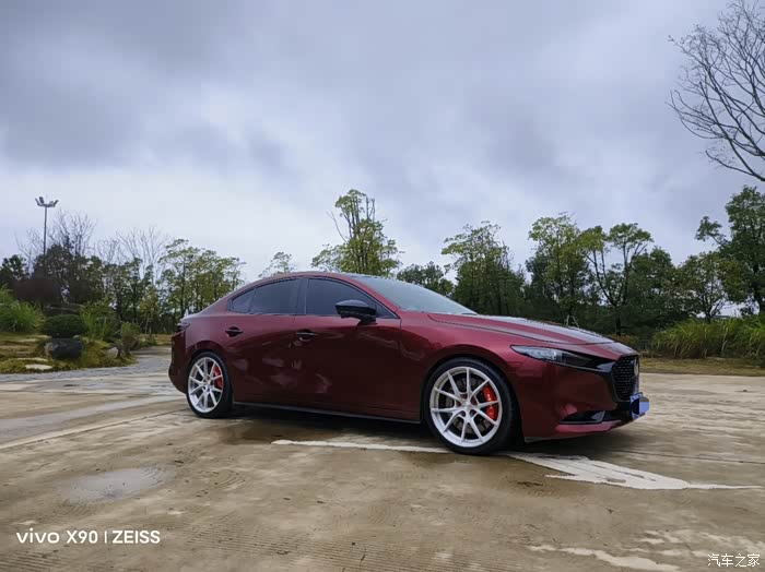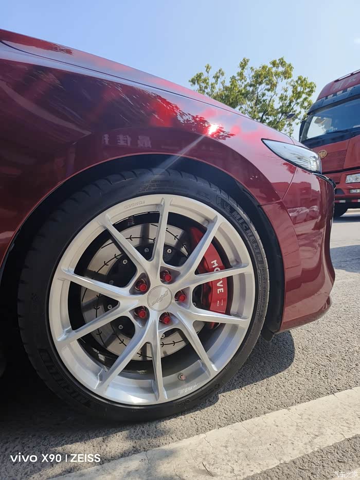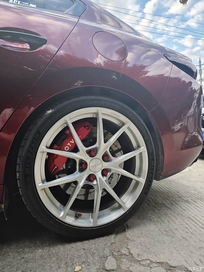 轮毂定制叶辐轮YE12拉丝银19寸(et前40后38)轮胎选择用了米其林PS4S(这款轮胎可满足日常激烈驾驶)针对马三刹车前段偏软的问题,前刹他选择了迈拓MX6S(小六活塞)