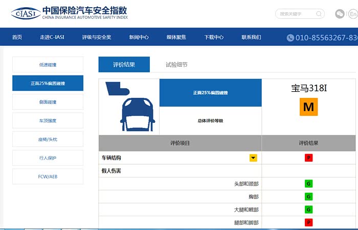 宝马3 25%偏置碰撞结构得分只拿了P,但是在气囊的加持下拿了M的评价
