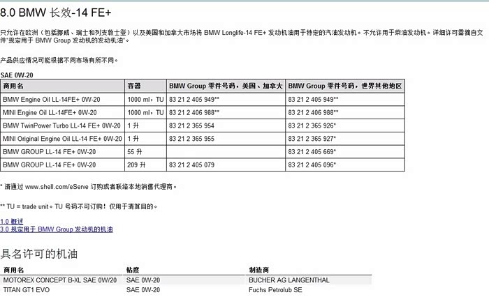 史上最全宝马认证机油列表(五)符合BMW LL-14 FE+ 标准的机油!